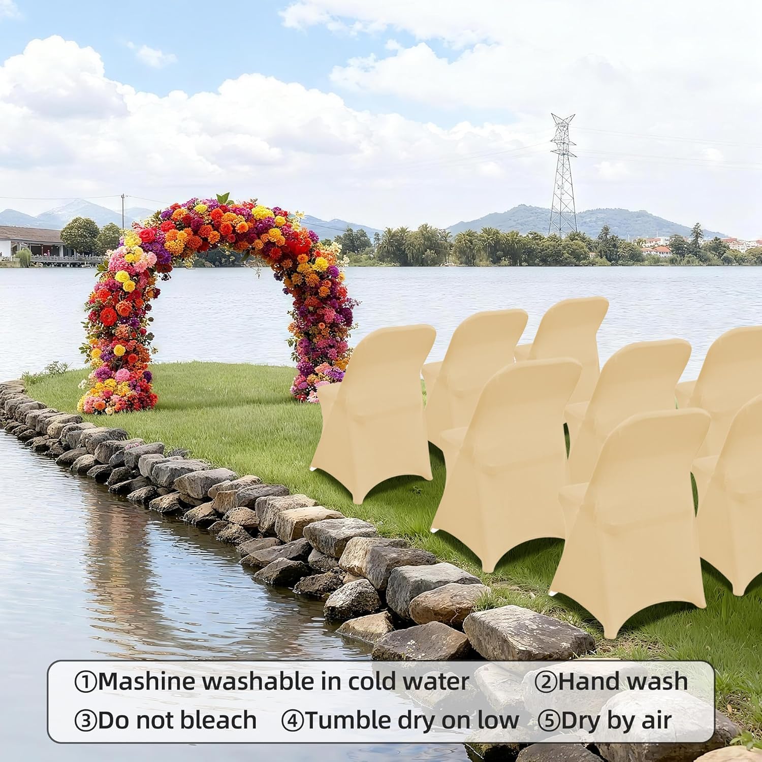 | Special Features | Folding Chair Covers, Spandex Stretch Soft, Universal Fitted, Washable, Wedding Party Banquet |