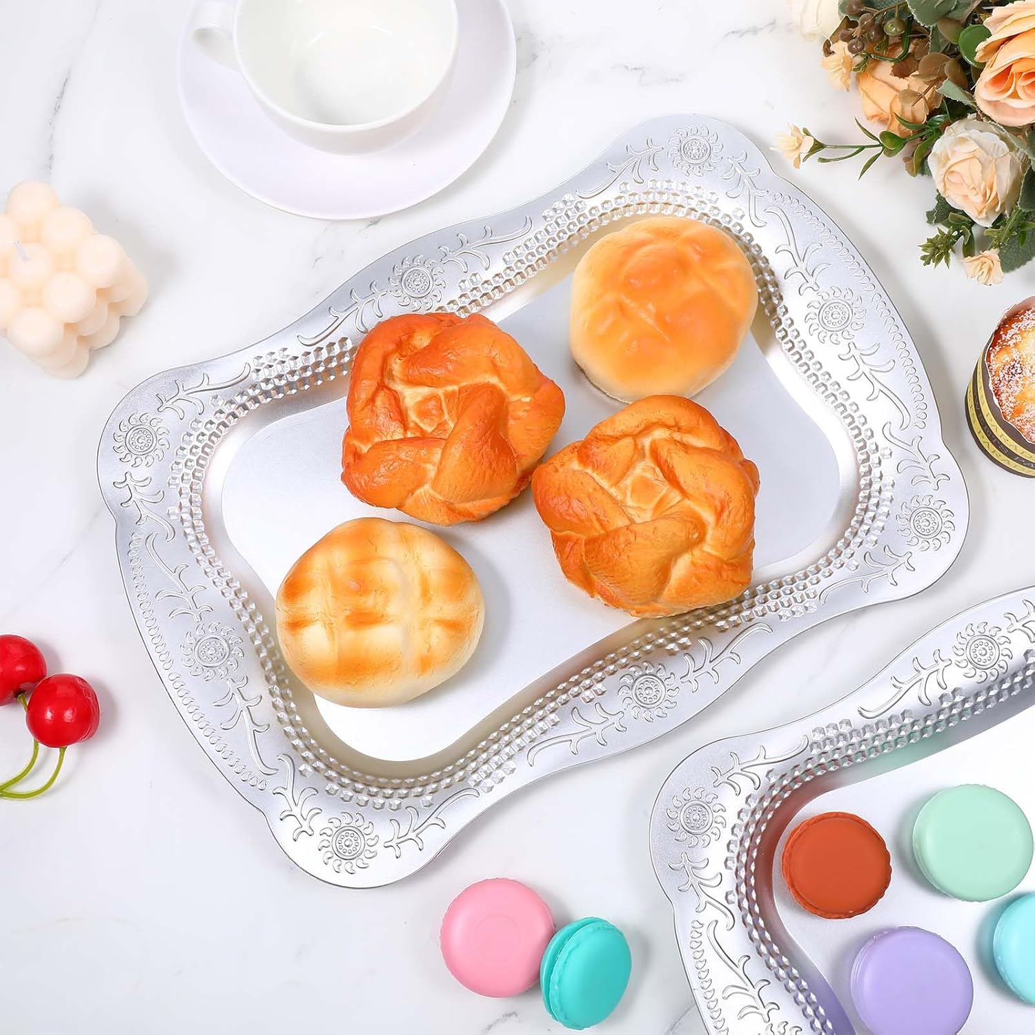 • Multipurpose Use: besides serving meals, these silver serving trays for party double up as home decorations owing to their attractive silver color, rectangular shape and embossed design; Easily infuse elegance and style into your home's decoration using our trays, proper as an accessory on top of your table