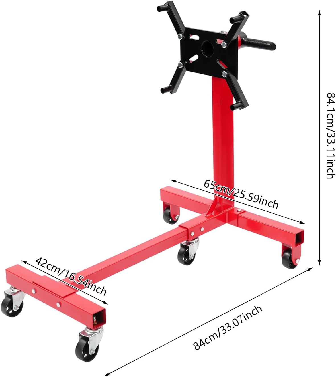 ApplicationThis engine stand is suitable for fixing the engine block for maintenance. It applies to garages, repair shops, automobile factories, etc.SpecificationMaterial: A3 Steel, Cast IronColor: RedAssembly Required: YesProcess: Spraying PlasticsMax. Load-bearing Capacity: 567kg/1250lbsGross Weight: 21kg/46.29lbsPackage Size: 81*21*21cm/31.89*8.27*8.27inProduct Size: 84*84.1cm/33.07*33.11inProduct Wideness: 65cm/25.59in, 42cm/16.54inPackage Included1*Engine Stand5*WheelsAll Accessories Needed for Installation
