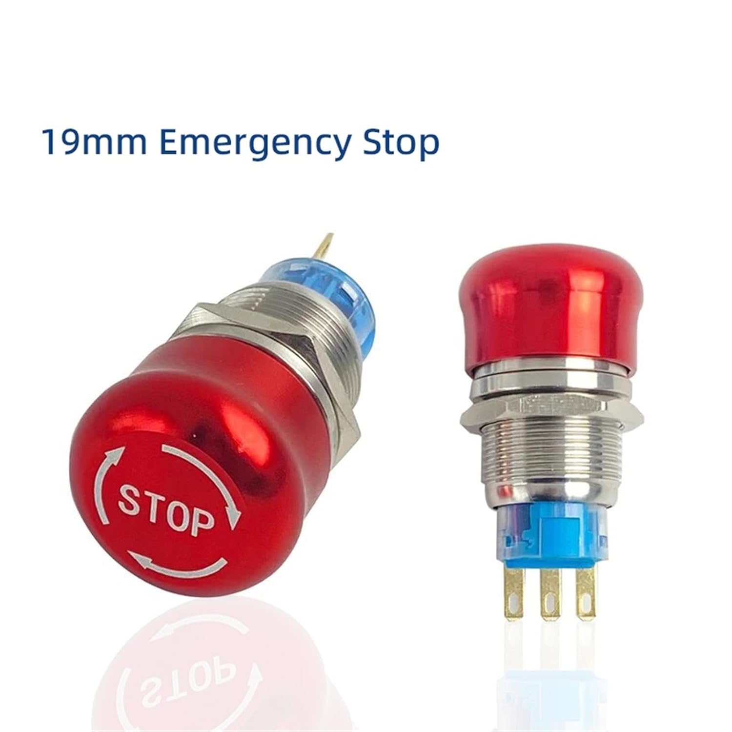 Magnetic Switches19mm Metal Push Button Switch Emergency Stop Red Rotary Locking 3 Pins 1NO1NC 1Pcs