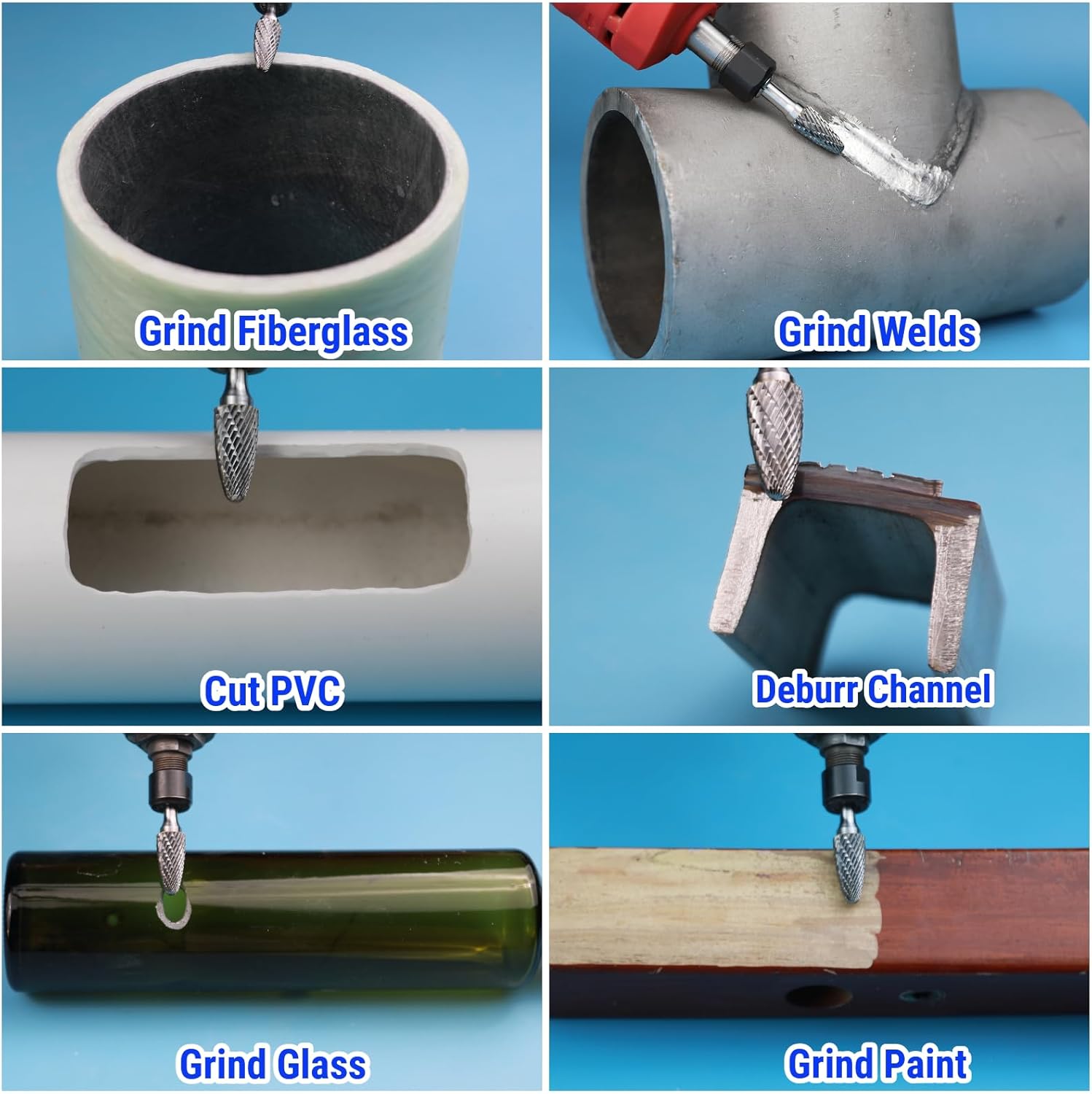 | Usage | Grinding, deburring, cutting, shaping, porting on metal, steel, aluminum, wood, stone. Works with die grinders and rotary tools. Ideal for metalworking, fabrication, carving, and tool maintenance. |