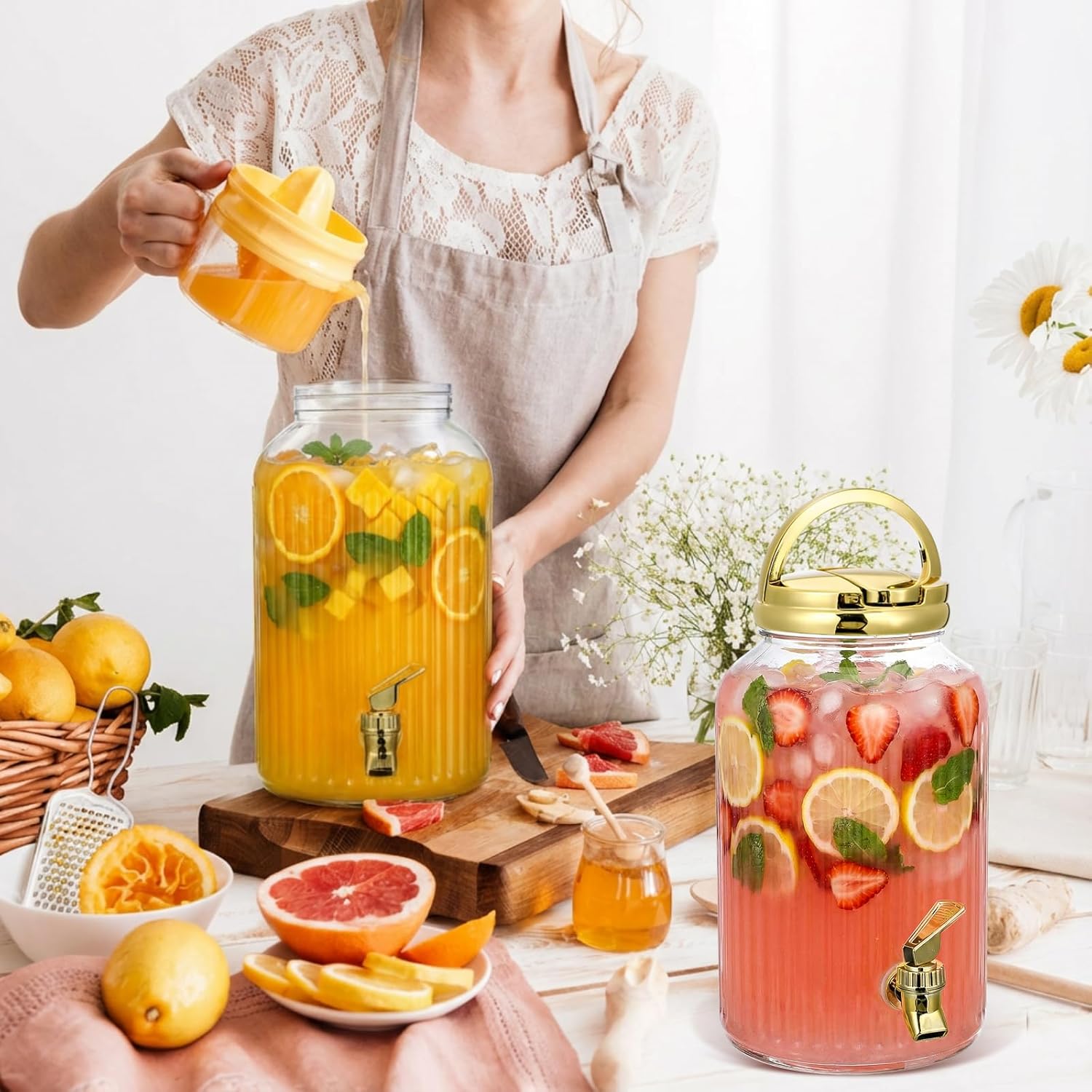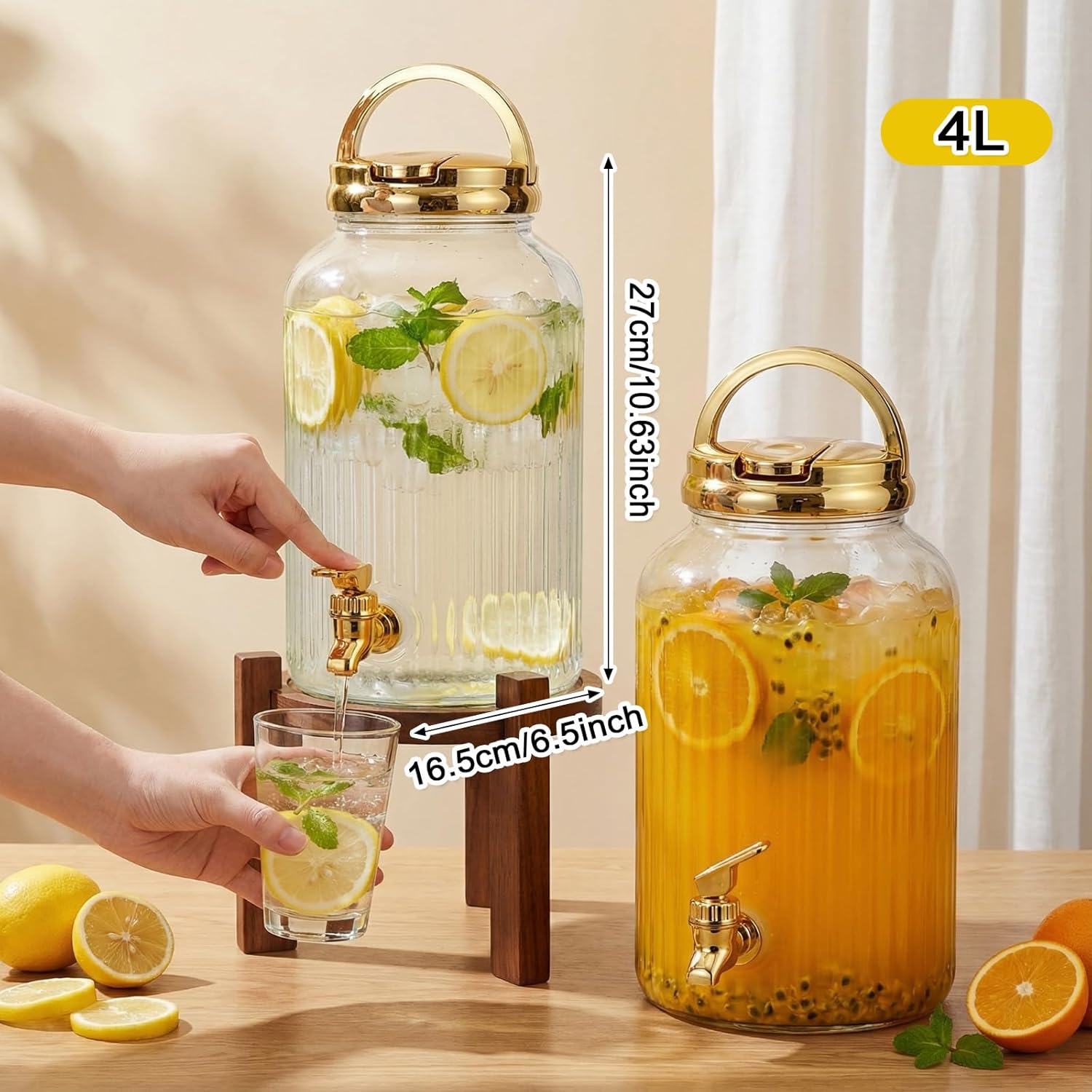 Features: Bright colors: The bright gold color is attracted attention and serve as a centerpiece during gatherings. Suitable for serving beverages at parties, picnics, or family gatherings while enhancing your kitchen's aesthetic. Whether you're hosting a summer barbecue or a cozy family dinner, this drink dispenser will elevate your decoration and impress your guests. Stylish dispenser: Our dispenser made from quality plastic, it's designed to withstand regular use while being easy to clean. And which houses a secure spigot and carrying lid. From lemonade to iced water, serve your drinks with using this versatile dispenser. Specifications: Material: PET Color: gold Size: Dispenser dimensions: about 27 x 16.5cm / 10.63 x 6.5inches Dispenser capacity: about 1 gallon Package includes: 2 x Plastic drink dispensers Notes: Manual measurement, please allow slight errors on size. The color may exist a slight difference due to different screen displays.