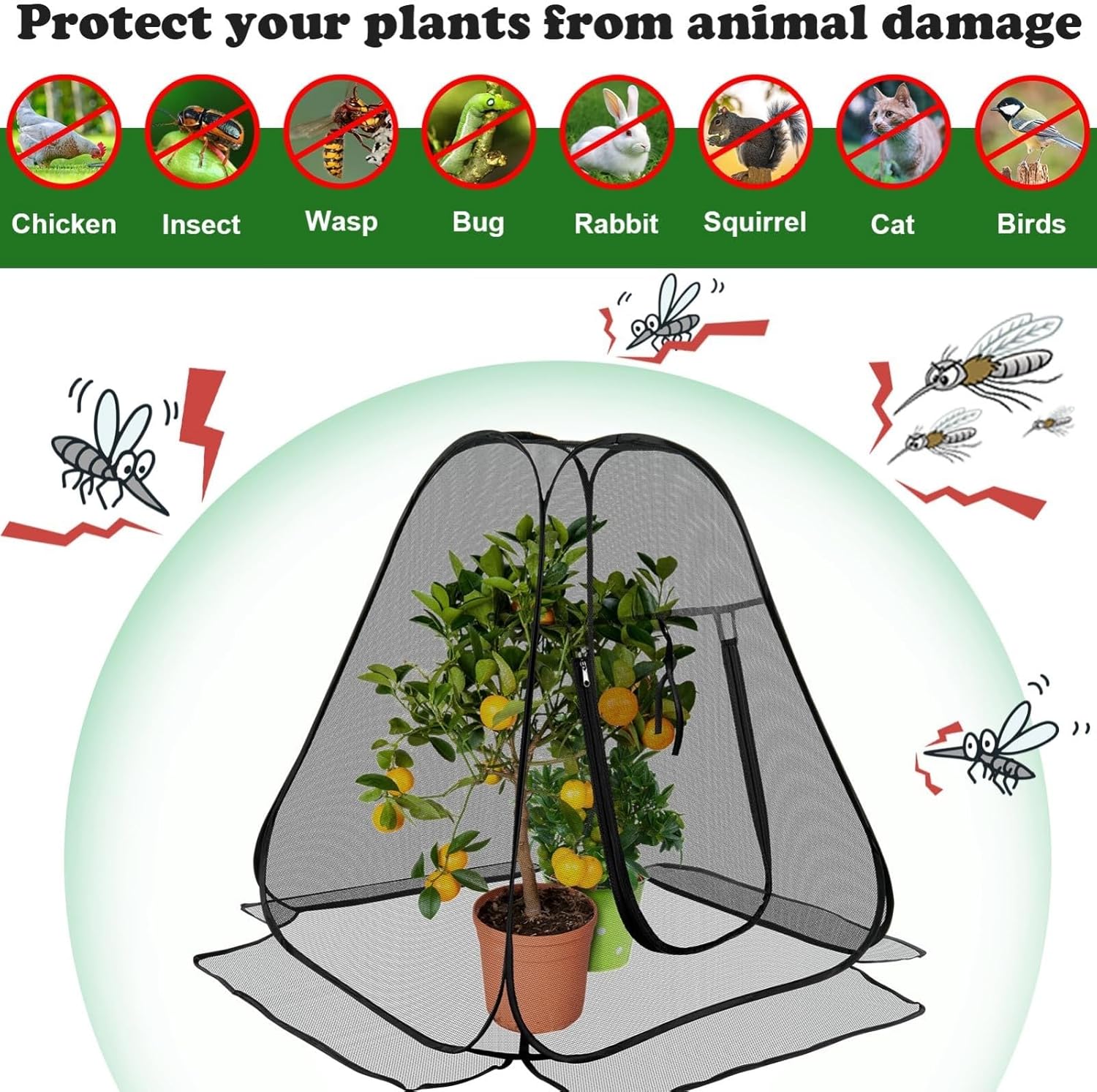 2. Portable Plant Barrier Weatherproof Shelter Easy Setup for Balcony Patio GardensFeatures:Effortless Setup Up Plant Cover provides with tool deployment, creating a barrier against and sudden weather changes in seconds perfect for busy gardeners seeking Crafted from breathable, tear resistant fabric, this gardening net maintains optimal while blocking and small animals, solving traditional covers' ventilation issues without compromising durability.Ideal for gardeners, busy plant enthusiasts, and conscious users needing space efficient for balcony gardens, patio vegetables, or indoor potted plant clusters.Versatile enough for backyard raised beds, greenhouse seedlings, and apartment window farms, this plant protector adapts to container gardens, vertical , and temporary outdoor cultivation areas.Its foldable design with reinforced edges combines portability with extended seasonal use, offering garden that withstands exposure and light rain while promoting plant growth.Specifications:: , -density braiding process, strong breathability and durability.Properties: Foldable design for easy storage and carrying, suitable for a variety of plant types.Practicality: Effectively and birds from invading , while providing a good ventilation environment, suitable for indoor balcony, courtyard and small greenhouses and other gardening scenarios.Package Includes:Tent net × 1Note:Zippered door
