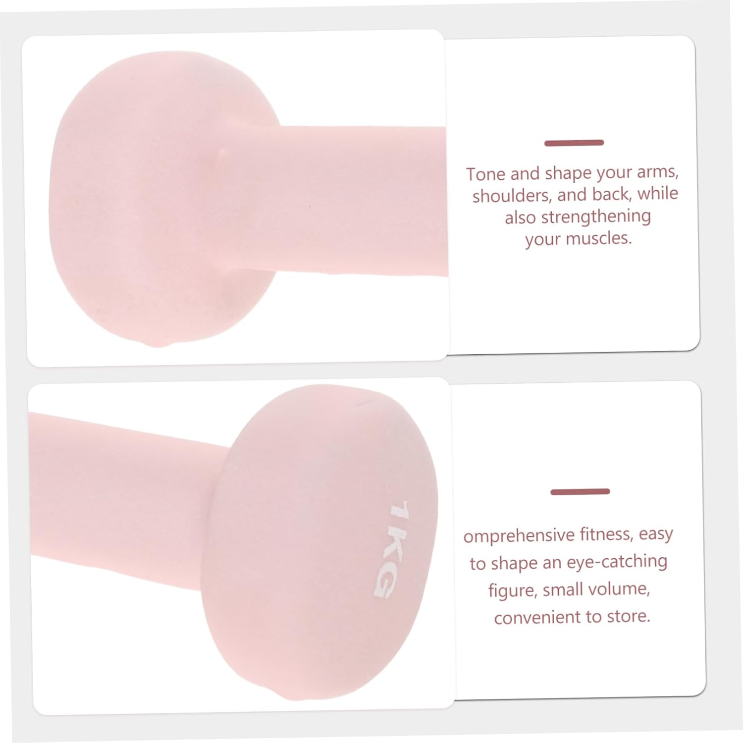 Package List 1 pair x fitness dumbbells Characteristics -Color:Pink home workout weights -Size:14.00X6.00X6.00cm/5.50X2.36X2.36in two pound weights -Material:Cast iron, plastic arm weights for women -The vinyl coating on these weights ensures a sweat-resistant and non-slip surface, enhancing safety and workout efficiency pool weights for water exercise. -It is for home fitness enthusiasts, these weights are excellent for muscle toning and strengthening exercises dumbbell weights. -Constructed from cast iron, these dumbbells are designed to be and , making them ideal for home workouts physical plaything. -Featuring a vibrant pink color, these dumbbells add a fun and stylish touch to your fitness routine, motivating regular use hand weights for walking. -With a versatile design, these dumbbells allow for comprehensive workouts, targeting various muscle groups for balanced fitness weightlifting dumbbells.Goods Informationarm weights for women The vibrant pink color adds a stylish touch to your home gym, making these dumbbells both and visually appealing.home workout weights The vinyl coating provides a comfortable, non-slip grip, ensuring safety during workouts. barbells exercise tool Enhance your strength training with our cast iron dumbbells