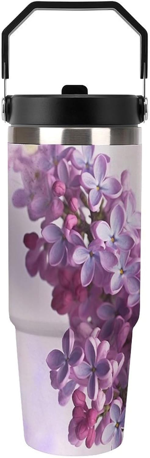 Our Lilac Flowers travel water bottle is made of food-grade stainless steel. The wide mouth design makes it easy to clean and add ice, and the powder-coated exterior is non-slip and durable, ensuring driving safety.Whether you prefer sipping or quenching your thirst, this personalized insulated mug has you covered. Featuring a splash-proof straw design, a sealing ring securely holds the reusable straw, and a drinking spout and full-coverage lid for enhanced leak-proof performance, this mug allows you to easily carry ice water to work, meetings, the gym, or on trips.You can give it to your friends and family as a birthday, Mother's Day, Father's Day, New Year's, Thanksgiving, and holiday gift. It's a thoughtful present.