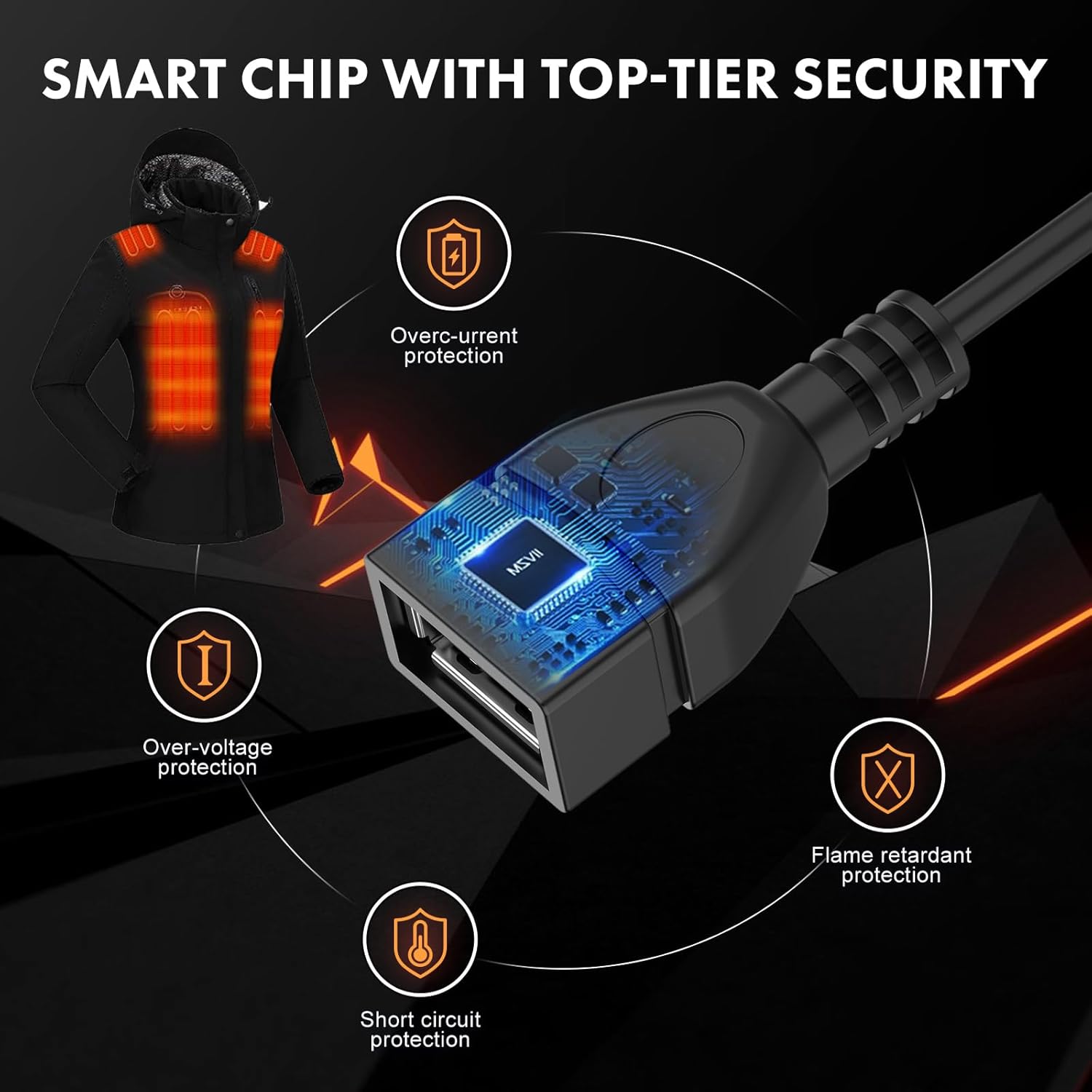 【5V2A 20000mAH Battery Pack Special for Heated Clothing】20000mAh large capacity, compatible with most heated devices (men's heated jackets, heated vests and pants) on the market, and also suitable for charging smartphones. Note: This is 5V heating vest battery pack. No DC output, not suitable for 7.4v heated clothing. 【Exclusively Designed Heated Clothing Charger】 Our innovative charger, exclusively developed by our company, is purpose-built for 5V 2/3A heated clothing(heated vest, heated jacket, heated pants). It's the only charger of its kind on the market, ensuring compatibility with all leading 5V 2/3A heated clothing brands and models.