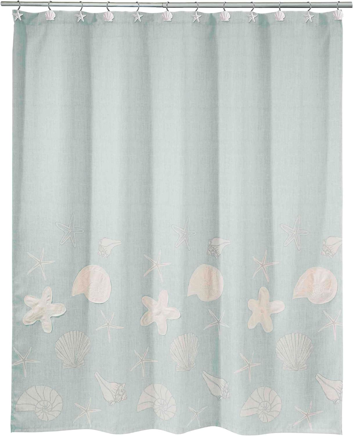 The Avanti Sequin Shells Mineral 3-Piece Decorative Towel Set features beautifully embroidered starfish on white applique fabric and coordinating fabric border on the bath and hand sizes. 100% cotton (exclusive of embellishment) mineral terry towel. Set includes one each of bath, hand and fingertip. Embroidered and sewn in the US, imported materials.