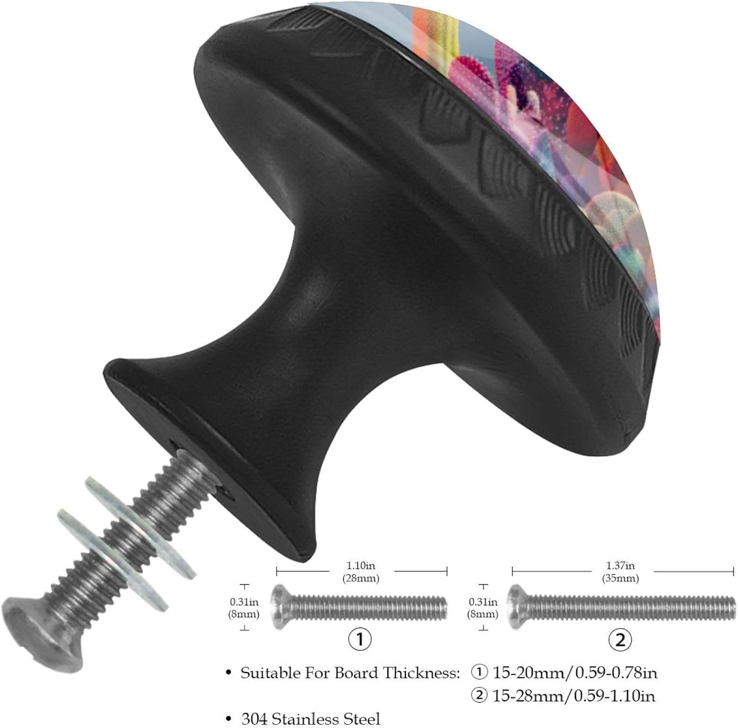 • PERFECT SIZE - Our cabinet knobs & drawer knobs are ideally designed with dimensions of 1.37" (Length & Width) x 1.10" (Height) x 0.66" (Base Width), ensuring a snug fit for your furnishings. As professional cabinet hardware, please verify the SIZE and thickness of your current cabinet knobs and boards before purchase. Screws included fitting 0.59"-1.10" thick boards, making these drawer knobs with screws ready for immediate use.
