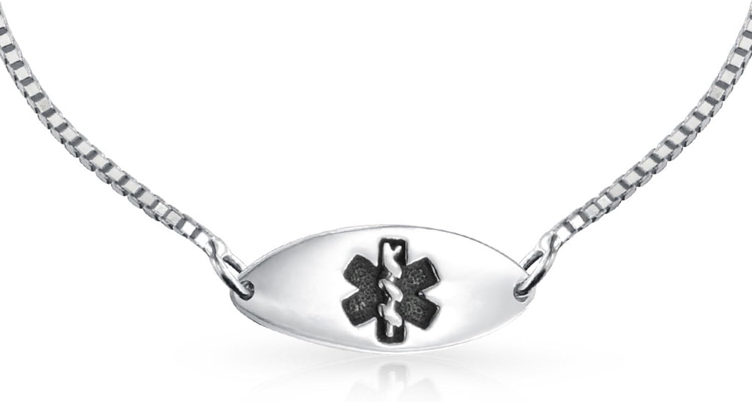 A medical ID bracelet is essential heart jewelry for women with medical conditions. It features two hearts and the red Staff of Asclepius symbol. The sterling silver chain bracelet can be engraved with vital medical information. This medical cross jewelry could save a life in emergencies. Order your durable and practical bracelet today.
