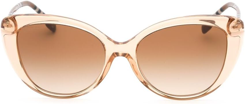 Burberry Sunglasses. Series number: BE4407. Color code: 408813. Shape: Cat Eye. Lens Width: 54 mm. Lens Bridge: 17 mm. Arm Length: 140 mm. 100% UV protection. Non-Polarized. Frame Material: Acetate. Frame Color: Peach/Check Brown. Lenses Type: Brown Gradient. Rim Style: Full-Rim. UPC/EAN code: 8056597920278. Burberry Brown Gradient Cat Eye Ladies Sunglasses BE4407 408813 54. Manufacturer's Packaging Included. Packaging Size And Color May Vary.