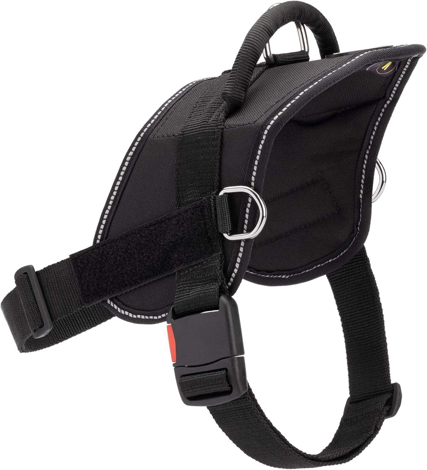 When it comes to pet harnesses, Dean & Tyler's DT Harness is hands down best in breed for outdoor excursions with your dog! Durable and lightweight, DT Harness is excellent for walking, running, sporting, tracking, swimming and everyday adventures.Featuring two adjustable straps to achieve a perfect fit, light-reflective trim for increased visibility and safety, three heavy-duty D-rings for a variety of uses and a handle for quick control. Includes loop-sided fasteners on both sides to display removable patches, which can be can be cute, fun, sassy, or serious for working dogs, service dogs, or everyday pets needing to make a statement to onlookers.*This neoprene nylon dog vest is weatherproof and machine washable. Ships in a branded mesh bag, which doubles as a laundry-bag for easy cleanup.*Patches sold separately.