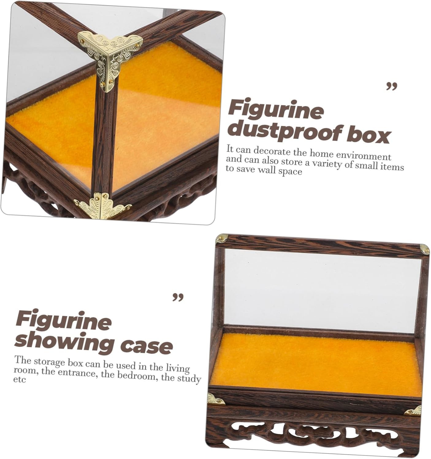 Package Include Features - Material: Wood, acrylic collectable display case. - Made of high-class acrylic and wood material, and for long serving time figure display. - With compact size design, without taking up too much space when using Display Accessory. - No need for assembly, integrated design for various vase and figures storage figurine display. - Smooth surface without burrs, this display box will not hurt or scratch your hands figurine display cases. - Pretty create additional storage space throughout the home Multi-function Display Case.Goods Informationdisplay cases often feel heartrending when you see your precious handmade model is full of messiness? Then you can choose the display box for holding your models.show cases clear display characters, figures, statues, 3D models, product samples, collectibles, vases, Buddha statues