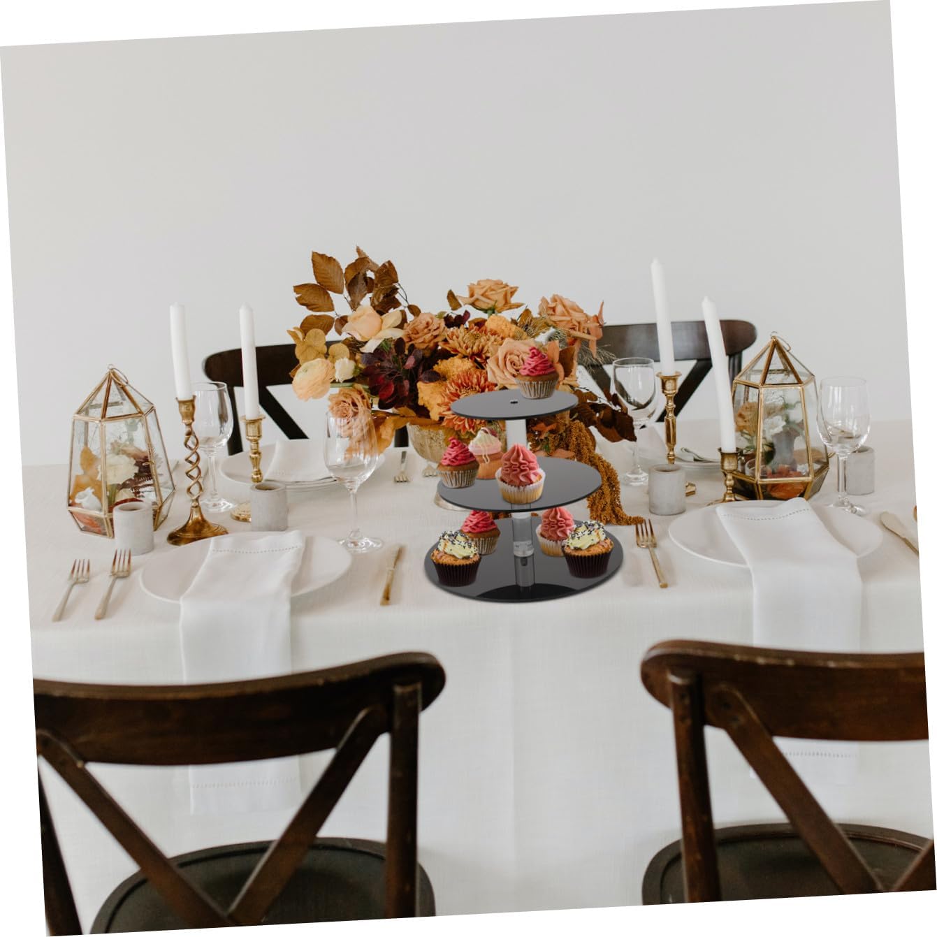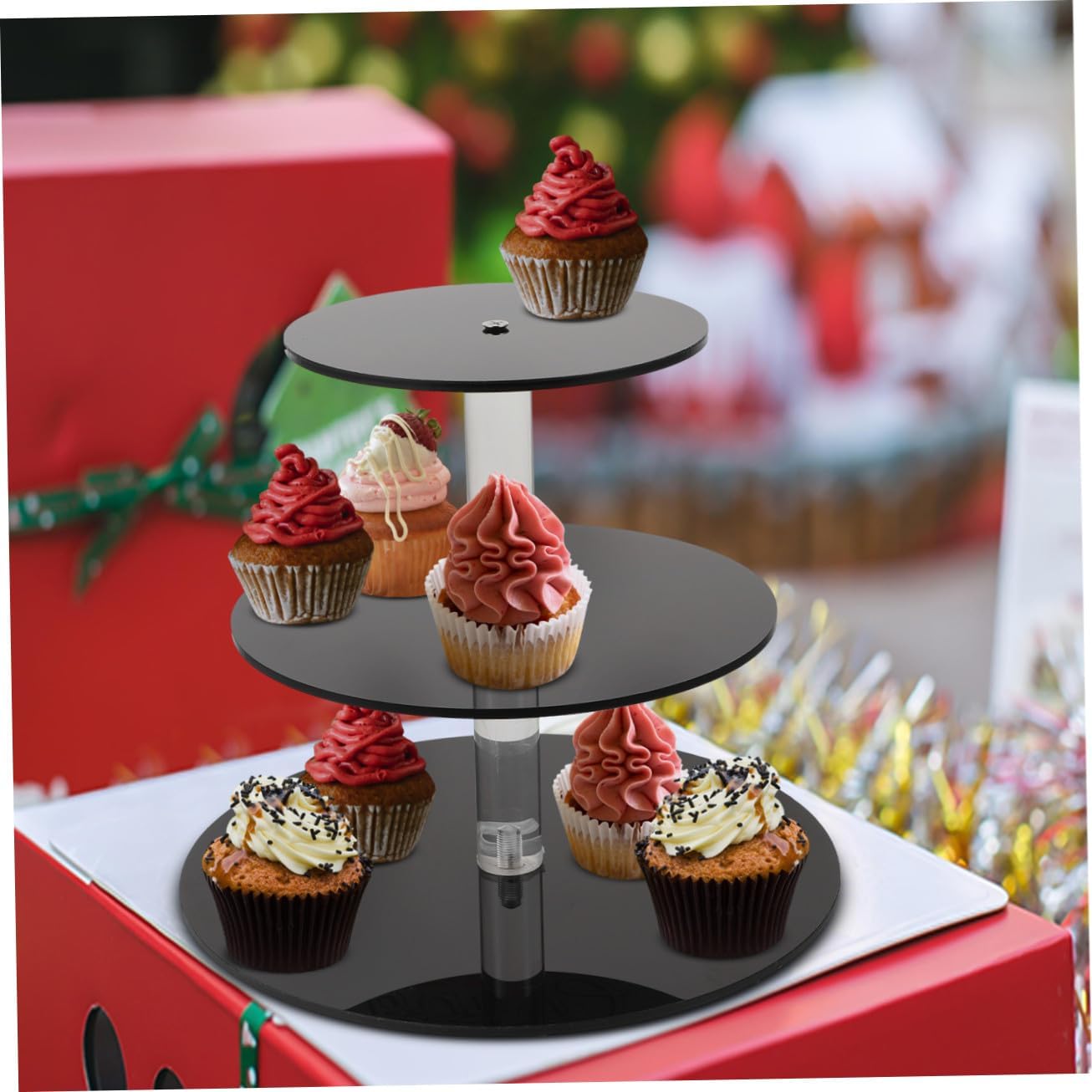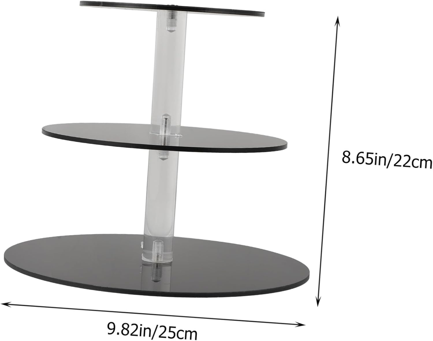 Package Include 1 x Set of Dessert Stand Characteristics - Material: Acrylic. - Color: Black. -Product Info:Cake stand - Size: Approx. 25.00X25.00X22.00cm/9.82X9.82X8.65in. - This dessert stand with fine workmanship, not easy to wear and tear, very practical in performance three tier serving tray. - Can be used for serving dried fruit, fruit, snacks, dessert, cupcakes, candies, and other food you like fruit stand for party. - Simple but decorative, it shows your personality and taste tiered tray stand. - 3-tier design, enough space for storage, suitable for most occasions and events fruit display stand party. - The reasonable size, without taking up too much space when putting on the desk.Goods Descriptiontea party tiered tray stand Simple but generous, it can store your food and other items, but also can decorate your home.cookie display stand You can also share it with your family and friends.cake holder stand If you are looking for a dessert stand, then you miss our dessert stand set