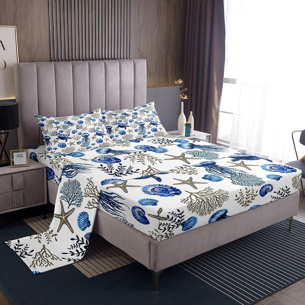 Size Information Twin size: 1 Fitted Sheet 39"x75"x16", 1 Flat Sheet 96"x66", 1 Pillowcase 20"x30". Full size: 1 Fitted Sheet 54"x75"x16", 1 Flat Sheet 96"x81", 2 Pillowcases 20"x30". Queen size: 1 Fitted Sheet 60"x80"x16", 1 Flat Sheet 102"x90", 2 Pillowcases 20"x30". King size: 1 Fitted Sheet 78"x80"x16", 1 Flat Sheet 106"x90", 2 Pillowcases 20"x35". Versatility We have many kinds of styles for you to choose. You can easily find a product that suits the style of your room. The item is not only Suitable for your home, bedroom, guest room, living room, etc or rv, your families, friends, relatives, boyfriend, girlfriend. Modern Design The luxury aesthetic bedding sheets are made reactive printing and dyeing process. The pattern is clear, the color is and bright, which will not fade after repeated washing. Personalized As a manufacturer of digital printed home textiles, we follow current trends and bring you the latest and stylish home textile products. The item will make the room decorated in exquisite taste.
