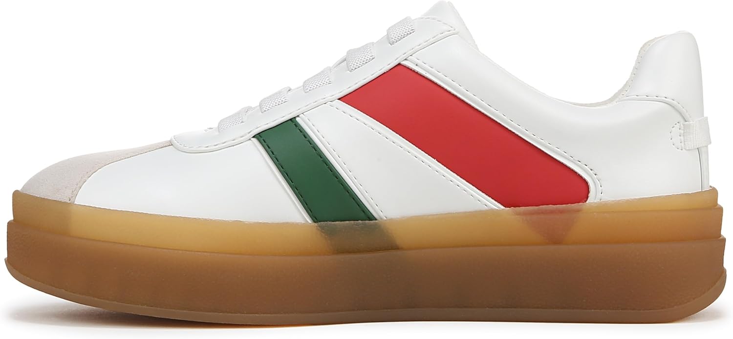 The colorful iterations of these gum sole sneakers are designed to elevate any look. Faux leather upper. Designed with elastic laces. Slip-on fit. Round toe. 1.75 inch platform.