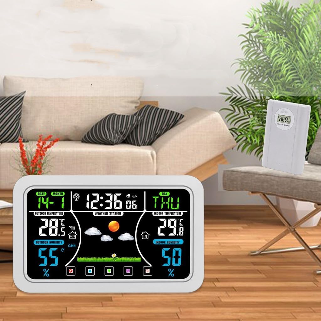 Search for humidity monitoring and measure the air conditioning in real time.With a bracket, it can be placed on the table.Also display the temperature, humidity, and time.Low power consumption, high stability and accuracy.Thermometer makes your life easier and suitable for many places.Material: plasticDimensions: 20*12cmPackage: 1 * thermometerThis auto-dimming display shows the current date, time, and barometric pressure, a must for all full-fledged thermometers weather instruments and weather stations for home