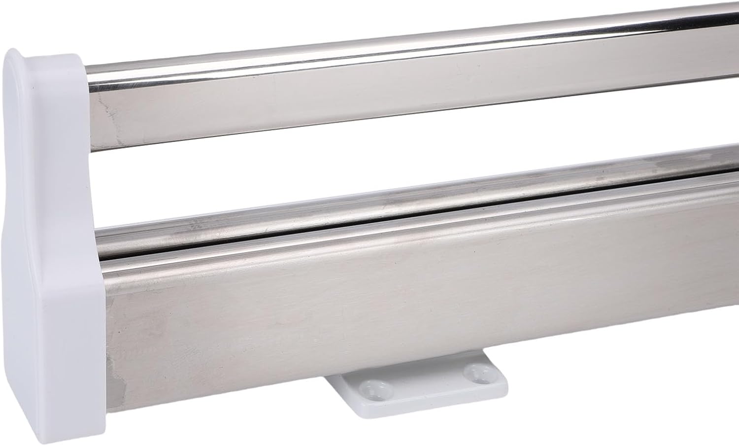 Specification: Item Type: Pull Out Closet Rod Slide Rail Length: Approx. 40cm / 15.7in Product Color: Stainless Steel White Material: Nylon, Cold Rolled Steel, Aluminum Alloy, Stainless Steel Weight: Approx. 985g / 34.7oz Package List: 1 x Clothes Hanger Rod 1 x Screw Pack 1 x User Manual Notice: 1. When installing the set, the steel balls inside the center rail must align with the grooves on the inner rail. 2. After installation, perform a pull test to check if the hanging rod slide rail is smooth, installation is stable, and if there is any leaning in the front. If the slide rail is not smooth, remove the outer rail and reinstall.