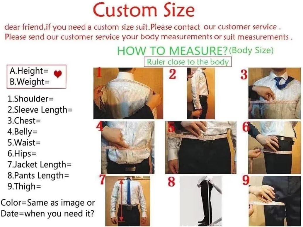 CUCUSISISpecializing in providing Men's Clothing, including men's business suits, tuxedos, men's casual suits, formal suits, groom tuxedos and other clothes and clothing accesories.♥Occasion: Easy to Match with Any Formal/Mens Suit in Wedding/Party/Business/Graduation/Halloween/Christmas/Meeting/Prom/Good Gift for Your Friend,Father,Brother and Son Note: This product does not include accessories. ♥ABOUT COLOR: Computer screen has chromatic aberration, especially between CRT screen and LCD screen, color difference can not be avoided, so please understand that point.♥ABOUT SIZE: To avoid the size issue, Please choose your size according to our size chart images (Not the Amazon Size Chart).If these sizes can not fit you well,we can custom it for you.Please purchase the custom order and provide the following measurements to us for custom size. You can see our measurement method in the photo part. If these sizes can not fit you well, we can custom it for you for free. Please message us and provide your Body Size. ♥Measurements we need: Chest / Waist / Hips / Shoulder Width / Sleeve Length / Coat Length / Pants Length / Height / Weight.
