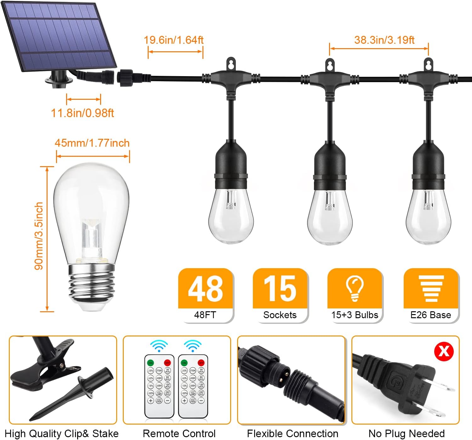 | Included Components | Solar string lights, Replacement solar panel |