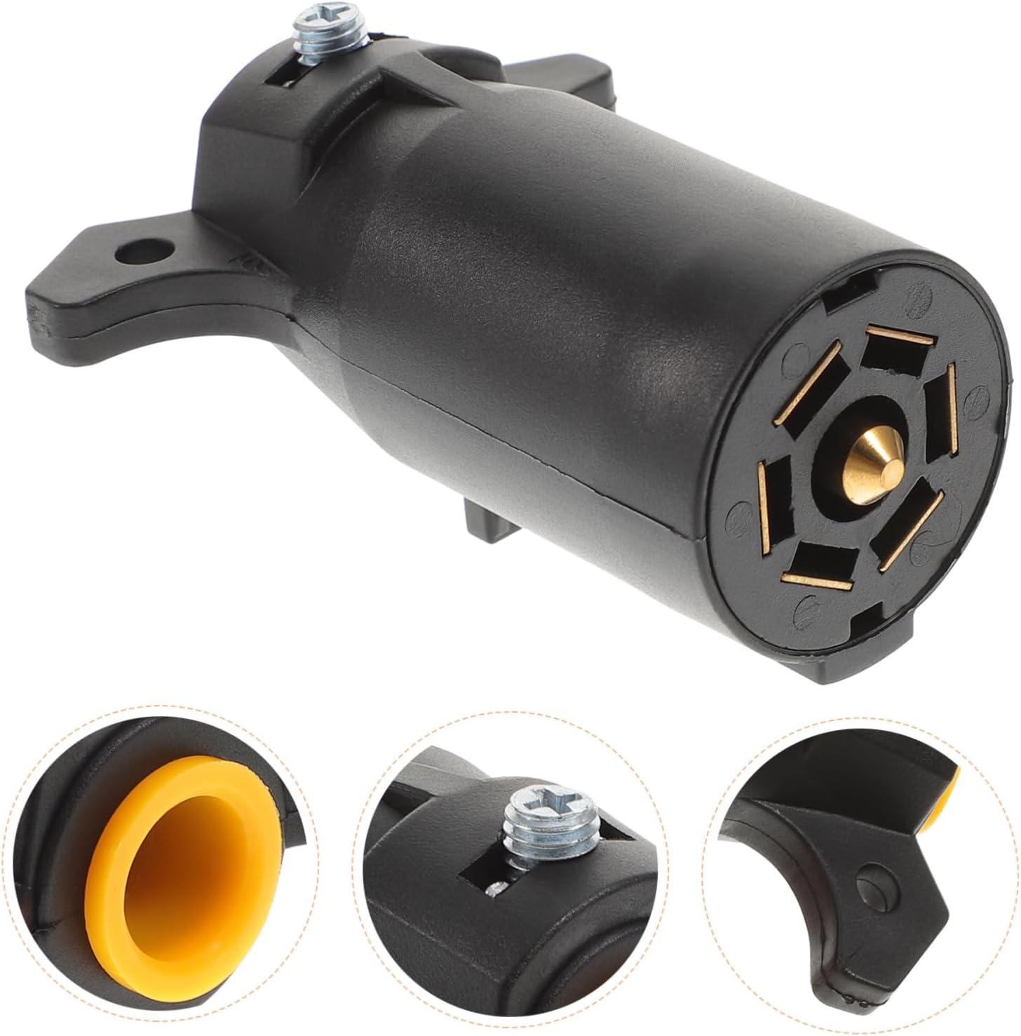 Package List 10 x RV Trailer Light Connector Adapter Plug Characteristics - Voltage: 12V trailer plug. - Warm Tip: Dear buyer, due to lighting effect, monitor's brightness, manual measurement, etc., there could be some slight differences in the color and size between the photo and the actual item 7 pin trailer plug. - Color: Black 7 way trailer plug adapter. - Design: 7-pin Operating 7 way trailer plug. - Material: Plastic and Copper 7 pin female to 4 pin male trailer adapter. - Size: About 9.2 x 7.5 x 4.1cm car trailer plug. - Easy and convenient to operate connector plug. - for RV, car, trailer, boat, etc trailer connector adapter. - material and fine workmanship ensures its durability rv trailer plug adapter. - Can be used to connect the taillights, brake lights, turn signals and reverse lights trailer plug converter. - Made of plastic and copper material for durable and use round trailer plug to flat adapter.Goods Informationrv trailer plug adapter This item is a trailer plug which is made of material for durable using.connector plug This trailer hitch wiring adapter plugs into any standard 7-way RV and can be used to connect the taillights, brake lights, turn signals and reverse lights