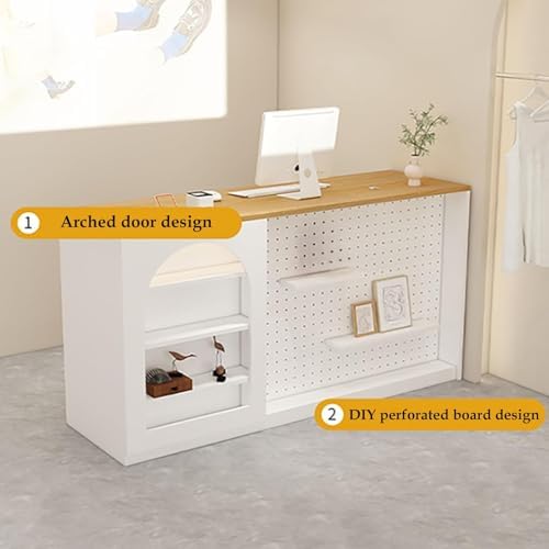 Enhance your workspace with our versatile Reception Counter Desk, designed to prioritize your privacy and security. Featuring a lockable drawer, this desk creates an exclusive personal area, ensuring that your important items are stored safely. Whether you're managing a busy reception or setting up a home office, this desk provides the perfect balance of functionality and style. The innovative perforated plate design allows for efficient storage of small items, keeping your countertop organized and clutter-free. Easily access essentials while maintaining a clean and professional appearance. Ideal for offices, salons, or any service-oriented environment, this reception desk transforms your workspace into a welcoming and efficient area. Crafted from high-quality artificial board, our Reception Counter Desk is built to last. The various size options—ranging from 31.5 inches to 55.1 inches in width—ensure that you can find the perfect fit for your space. Each desk is designed for easy installation, allowing you to set it up quickly and start enjoying its benefits right away. Specifications: - Product Name: Reception Counter Desk - Material: Artificial Board - Installation: Yes - Size Options: 31.5 × 19.6 × 35.4 inches, 35.4 × 19.6 × 35.4 inches, 39.3 × 19.6 × 35.4 inches, 43.3 × 19.6 × 35.4 inches, 47.2 × 19.6 × 35.4 inches, 51.1 × 19.6 × 35.4 inches, 55.1 × 19.6 × 35.4 inches Please note: This listing includes only the Reception Desk; other items shown are for display purposes. Minor measurement discrepancies of 1-3 cm may occur due to manual measuring. Actual colors may vary slightly from the images due to different screen displays. Elevate your workspace today with the Reception Counter Desk—where privacy meets practicality.