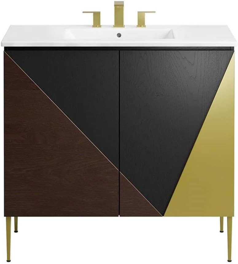 | Item Type Name | Modern Geometric Wood Grain 36" Bathroom Vanity in Black Black With Ceramic Sink |