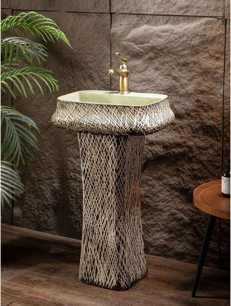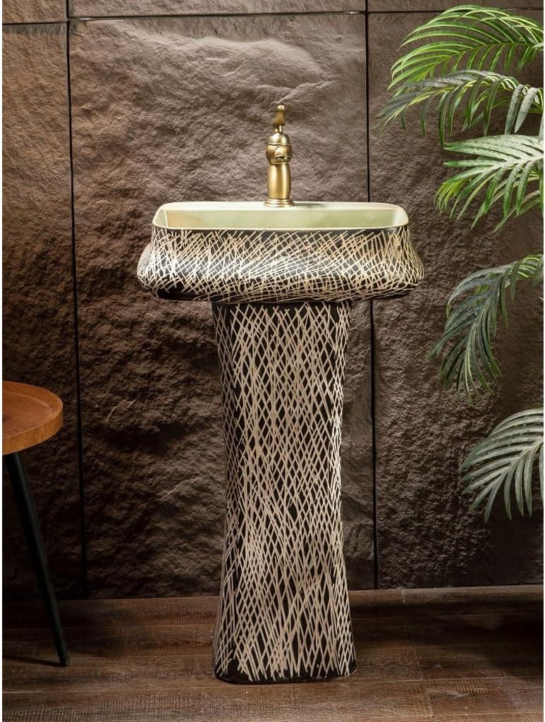 This pedestal sink is a perfect addition to home bathrooms, courtyards, parks, hotels, shopping malls and other commercial environments. Product Name: Pedestal Sink Product Material: Ceramic Product Size: 53cm/20.86inX84cm/33.07in Product Packaging: Contains 1 Sink + Faucet Notes: Please confirm the product size color before purchasing Items than main products shown in picture are for demonstration purposes only not included. Due differences light, display personal color, there may be between actual photo, please refer product. The above data reference only, manually measured, will an error of 0-2cm, product, thank you.
