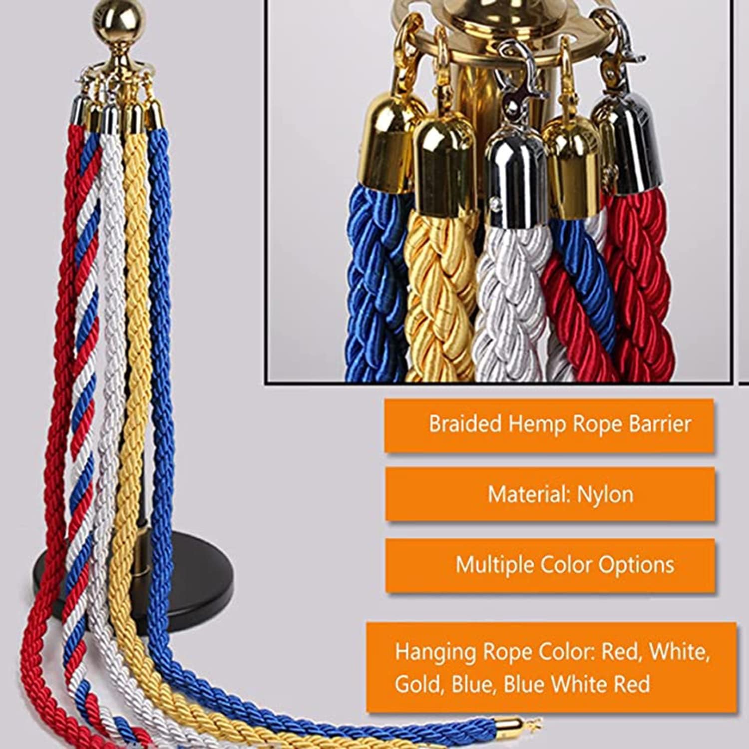 Are you still struggling to find some high-quality crowd control ropes for important occasions? Our nylon braided rope can meet your need. It looks great with any classic metal post. It is suitable for your VIP sign, VIP photo background area, suitable for cinema, hotel, grand opening, birthday party, entrance, lobby and other areas. The purpose is to keep the crowd under control.● Specifications- Rope Material: Nylon- Hook Material: Golden Metal Hooks - Length: 1.5m/5ft/59inch, 2m/6.6ft/78.4inch, 2.5m/8.2ft/98.4inch, 3m/9.8ft/118inch.- Diameter: 3.0cm/1.2 inches● Features:1. The rope body is woven from cotton and linen, but the surface is smooth and does not hold hands.2. Each end of the rope is capped with a chrome cap and heavy duty hanging hook.3. Great for crowd control at restaurants, movie theaters, trade shows.4. Multi-colored ropes are easy to match to your stanchions. (no include stanchion)● Package List:- Quantity: Braided hemp rope x 1 (No Stanchions!)● Notice:1. The item only includes the rope, not the post or stanchion!2. Due to different measurement methods, the product will have an error of 1-3cm. Hope you can understand!3. There may be chromatic aberration due to the difference between the recording lamp and the display. Please refer to the actual product.