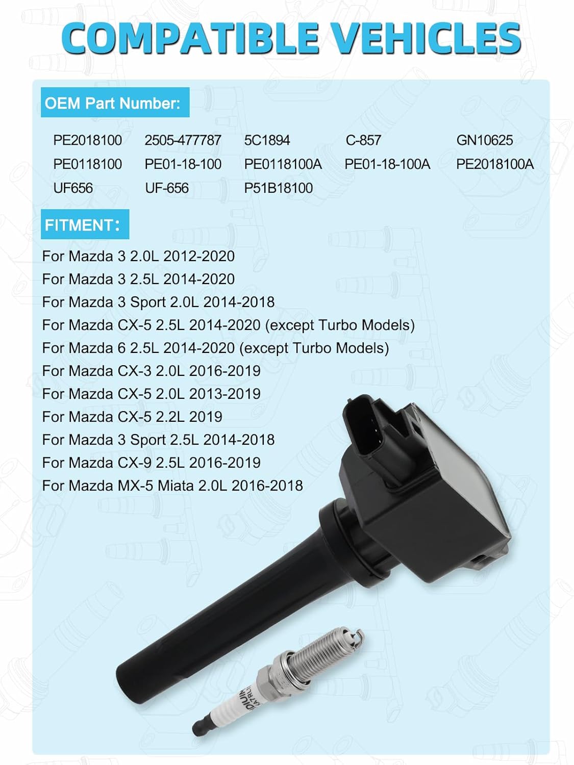 | Part Interchange Info | Can be used as a direct replacement for: PE2018100, 2505-477787, 5C1894, C-857, GN10625, P51B18100. Compatible with various Mazda models. |