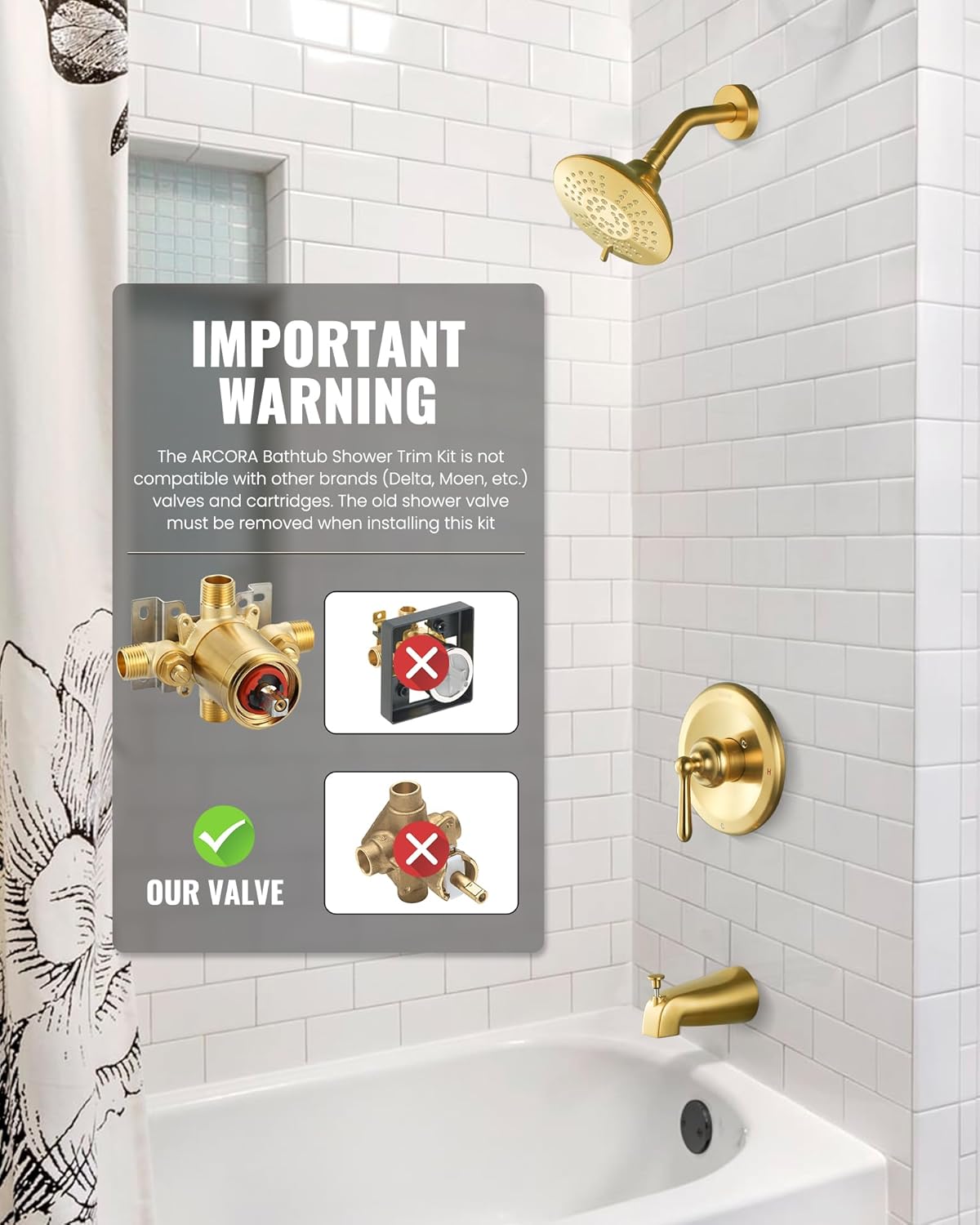 | Included Components | Shower head, Tub Spout, Mixing Valve, Single-Handle Trim kit |