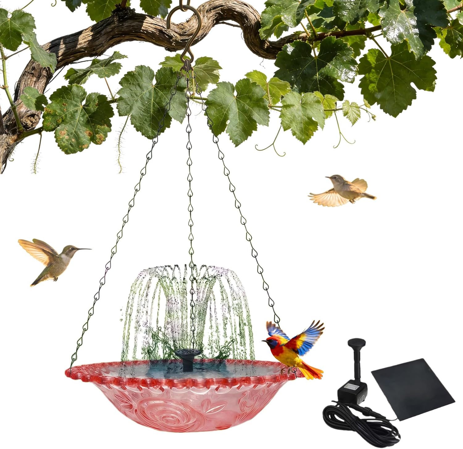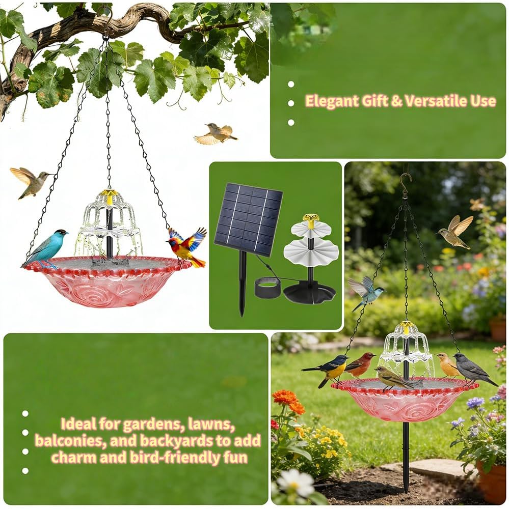 A garden feels different when there’s movement—when sunlight dances on water and birds gather naturally. This Solar Cascade Hanging Bird Bath Fountain turns any outdoor corner into a peaceful focal point. Thoughtfully designed and easy to place, it’s a small upgrade that makes a lasting impression. Solar-powered cascading water that attracts birds and adds peaceful movement to your garden.Feature:1. Solar-Powered & Auto-Charging2. Sunlit Cascade Garden Fountain3. Easy Hanging & Stable Safety4. Low Maintenance & Durable5. Elegant Gift & Versatile UseProduct SpecificationsName: solar cascade hanging bird bath fountainMaterial: PP, MetalColors: Blue, Red, Purple, GrayStyles: A (USB-powered single-layer)B (Solar-powered single-layer)C (Solar-powered double-tiered)Dimensions: 9.25*18inPackage List:1PC * solar hanging bird bath fountainDear Buyer, Warm Reminder1. Please note that all dimensions are measured manually and may have slight variations (1-3 cm).2. Additionally, due to differences in lighting conditions, monitor settings, and photography, the actual product color may vary slightly from the images displayed.3. If you have any questions, concerns, or special requests, please feel free to contact us anytime.We are always happy to help!