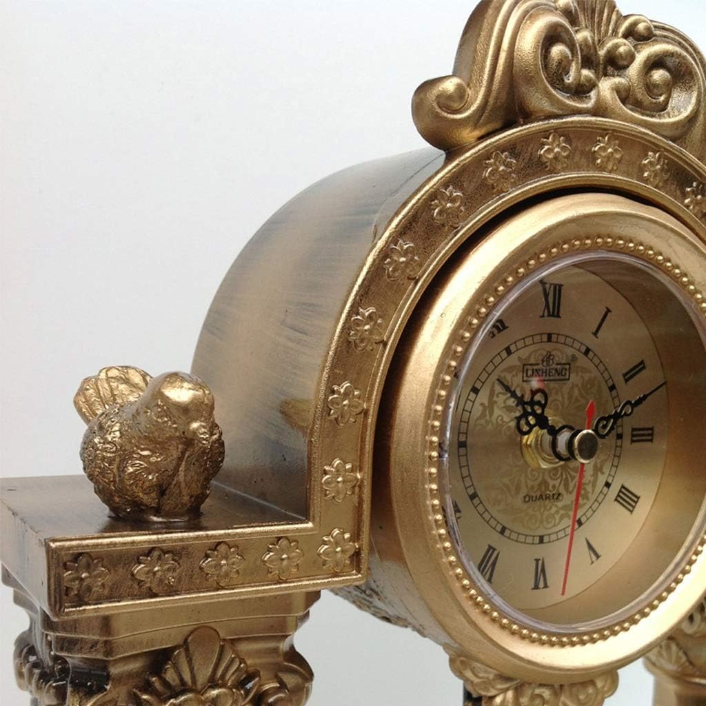 [Material] Resin[Size] Length 22*Width 11*Height 35cm (A section and B section are the same size)[Dial] 9 cm in diameter[Description] Silent antique table clock, European design, elegant .【Battery】 AA battery.Applicable scenarios: living room, bedroom, study,marriage, birthday gihts: A, BPacking Included 1 x Table ClockYou can put it on the table, it is very practical, choose gifts for family, friends and others.