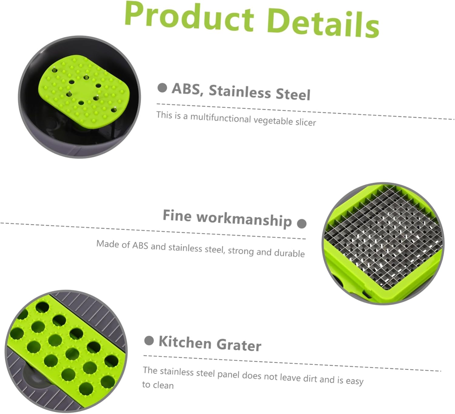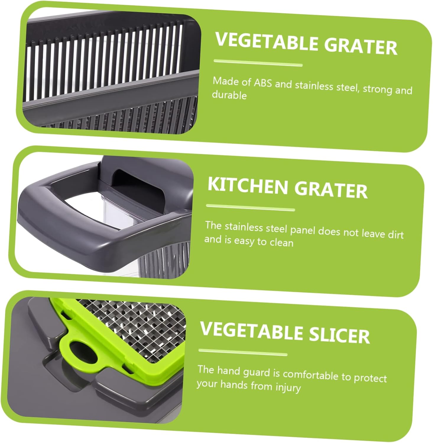 Package List 1 x Set Vegetable Slicer Features -Color: Assorted Color Kitchen Shredder. -Material: ABS, Stainless Steel Home Accessory. -Size: About 31.00X10.50X11.50cm/ 12.18X4.13X4.52in Kitchen Vegetable Grater. - Convenient and quick cutting or grating, saving of time Fruit Grater. - Multifunctional tools are the perfect helper in the kitchen Potato Slicer. - Stainless steel and ABS material, and Vegetable Chopper. - Easy to use and easy to clean. It can also be used for egg separation Manual Shredder. - Comfortable and ergonomically designed , easy to use Kitchen Grater.Goods InformationHome Accessory This vegetable cutter is made of ABS and stainless steel, which is sturdy and .Turnip Grater It is versatile and can be used for shredding and slicing potatoes, cucumbers and carrots.Fruit Grater It can also be used for separating eggs and egg whites