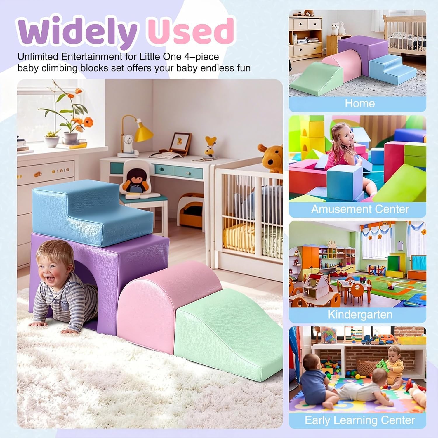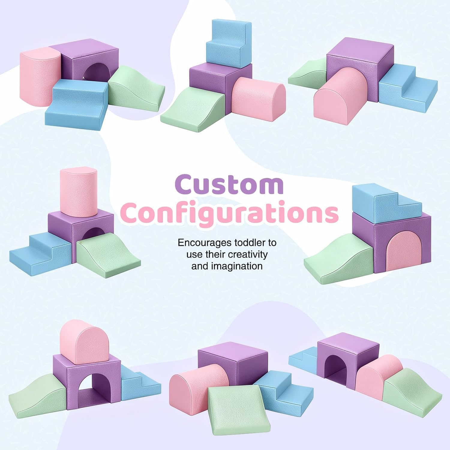 VERSATILE EXPLORATION PLAYGROUND: Our climb and crawl foam playset is a Montessori climbing set designed for toddlers aged 3-5 years, providing a safe and engaging indoor play experience. It includes climbing blocks and soft play climbing features, providing endless possibilities for creative play. Perfect for indoor climbing for toddlers, this foam play set inspires imagination and creativity in safe indoor environments such as homes, daycare centers, and kindergartens. BOOSTS DEVELOPMENT: These brightly colored kids indoor climbers & play structures have Velcro on the bottom to link and can be assembled into a variety of shapes, encouraging toddlers aged 3-5 years to climb, crawl, and slide. This toddler climber indoor can be used as both a Montessori climbing toy and a soft play climbing device, supporting physical and cognitive development through play. VERSATILE: The foam blocks for climbing offers a variety of shapes and activities, providing endless opportunities for play. Children can climb over and around the blocks, stack them to create structures, or use them as landing pads. This versatility increases play value and keeps children entertained for hours. PU LEATHER SURFACE, EASY TO CLEAN: Unlike traditional baby climbing blocks, our blocks for toddlers 3-5 features luxurious, easy-to-clean leather fabric. This upgraded product ensures durability and easy maintenance compared to ordinary foam climbing blocks, making it a practical choice for indoor climbing toys for toddlers. The climbing toys comes in an environmentally friendly vacuum-compressed package, requiring no complicated assembly. Simply open the package and let the foam blocks expand to their full, bright size within 48 hours to easily create a dynamic play area. After a simple installation, kids can immediately engage in playtime.