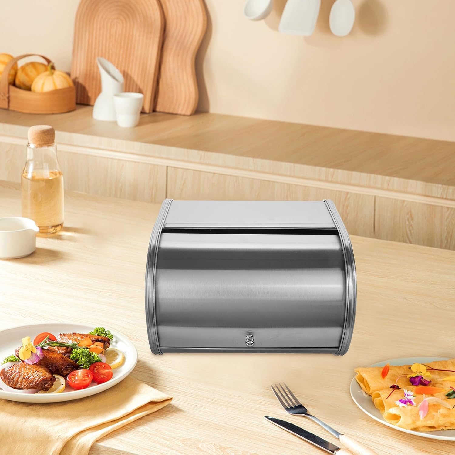 Package Include 1 x bread storage box Features -Size:30.00X27.00X17.80cm/11.79X10.61X7.00in -Material:Stainless steel -Color:Light Grey -Product Info:Frosted storage box - The vintage design of this bread box adds touch of charm to your kitchen decor, widely used. Desktop Bread Bin - This multipurpose storage box is perfect for storing not only bread, but also cookies and other baked goods kitchen organizer. - Made of and easy-to-clean material, this bread box use, easy maintenance. - This storage box is ideal for storing bread, snacks, and other items, helping to keep your space organized and clutter- Storage Container. - With its large capacity, this storage container allows for easy organization and storage of your breads Bread Storage.Goods Informationbread holder for kitchen counter Made of and easy-to-clean material, this bread box is built to last.kitchen organizer Its vintage design adds touch of retro charm to any space.bread organizer With its large capacity, metal bread box allows for easy organization of your kitchen essentials.Bread Storage Container The metal bread box is a stylish and versatile storage solution for your kitchen