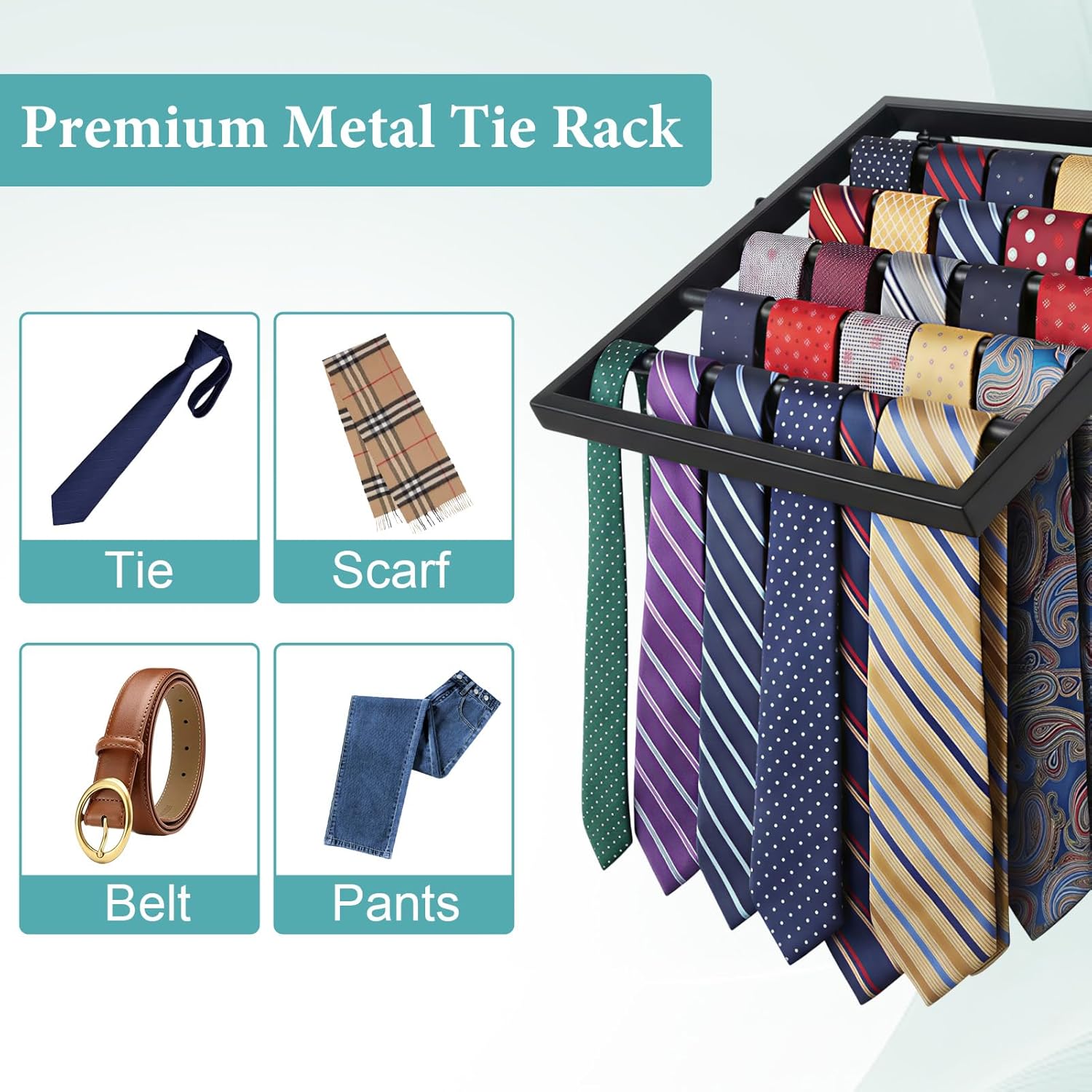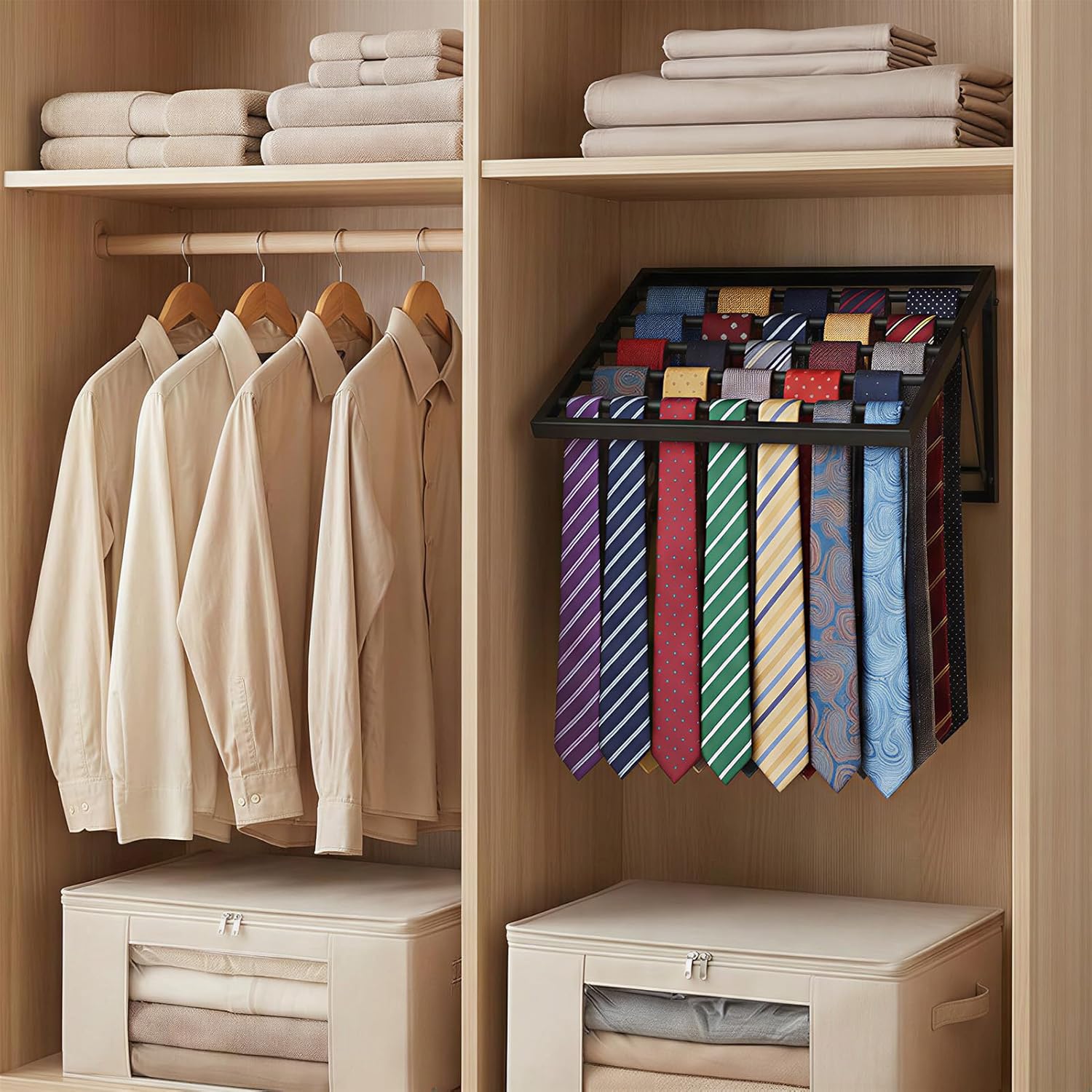 ๐ Large-Capacity Tie Organizer : This tie rack wall mounted is holds up to 58 ties with multiple bars to keep everything neat and wrinkle-free. This versatile tie holder also works great for organizing belts, scarves, bow ties, and even hair accessories, making it a practical all-in-one storage solution.