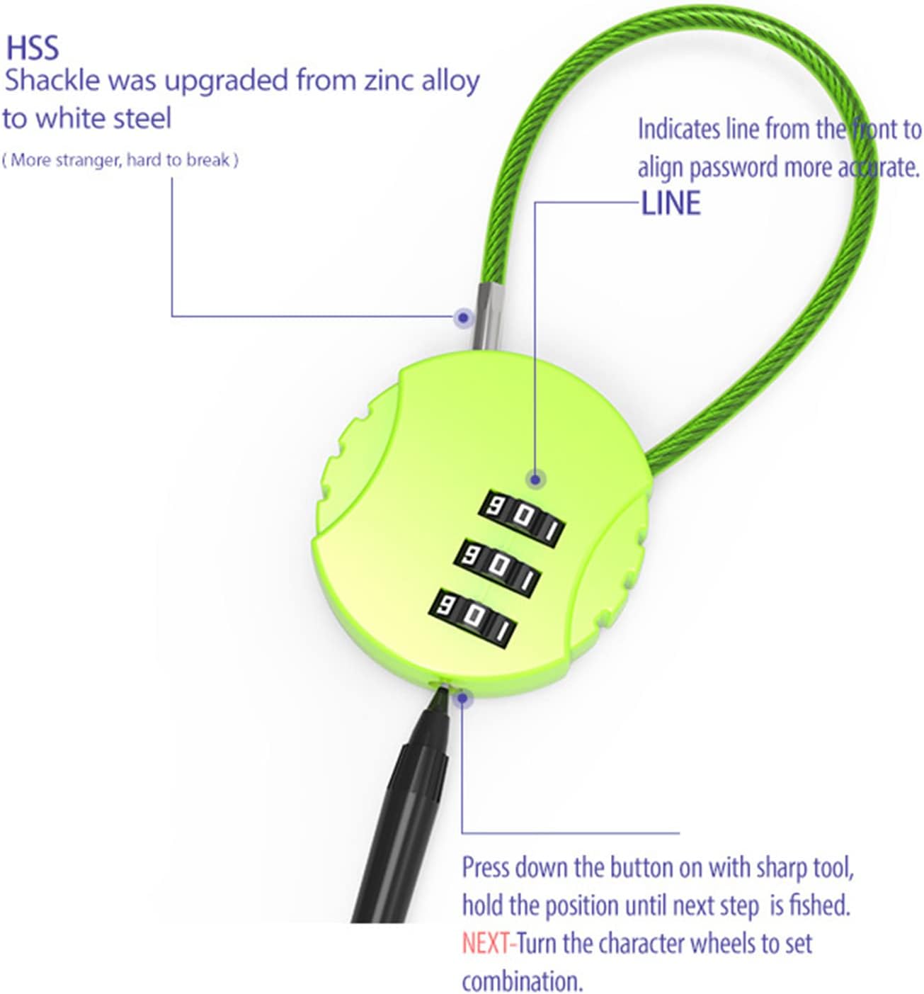 Weatherproof Padlock 3 Digit Password Cable Portable Wire Rope Storage Unit for Gym Locker Tool Box Features: Zinc alloy, solid, rust proof and weather proof The password is designed for added security. 3-digit password padlock is more difficult Small size, light weight, easy to store and carry. MULTI-PURPOSE: Suitable for small lockers, suitcases, briefcases, computer bags, backpacks, suitcases, lockers, tool boxes, furniture drawers, small cabinets MULTIPLE COLOR OPTIONS: Passwords are designed with multiple colors to confuse and promote identification and differentiation. Specifications: Zinc Alloy Color: Silver Red Black Blue Rope Length: 13.5cm/5.31inch Package Includes: 1 x Password Note Please allow 1-2cm error due to manual measurement. Please do not mind before you place the order. Due to the difference between different monitors, the picture may not reflect the actual color of the item