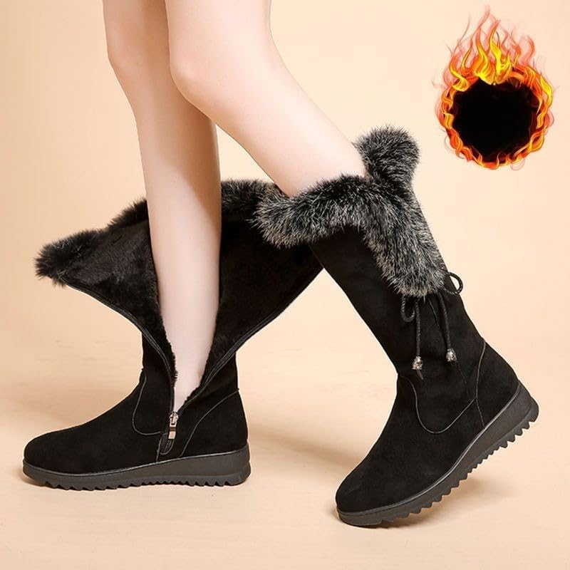 Product Category: Snow Boots Shaft Height: Mid-calf Heel Shape: Flat Heel Opening Depth: Shallow Opening Sole Material: Rubber Closure Method: Side Zipper Suitable Occasion: Casual Toe Shape: Round Toe Upper Material: Suede Holding Method: Buckle