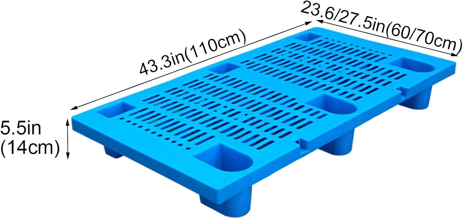 Brand : XPLKQXEFeature:The plastic pallet is made of HDPE raw material, and the surface is evenly covered with anti-skid particles, which has good anti-skid properties.The warehouse storage pads are brightly colored and have reinforced ribs on the back, which not only improves the stability of the plastic boards but also increases the load-bearing capacity of the pads.The grid platform pad is equipped with multiple drainage holes to effectively clear the accumulated water inside. Comes with splicing buckles, easy and convenient splicing, and can be used in a wide range of installations.Name: Breathable Grid Ventilation Pallet/Lightweight Floor Pallets/Polyethylene Pallet / Isolation Platform Pad Board/HDPE Breathable Grids Article Racks/Plastic Medium Size DisplayMaterial: HDPE raw materialColor: BlueDimensions (L x W x T): 39.4x23.6x5.5in/100x60x14cm , 39.4x27.5x5.5in/100x70x14cm , 43.3x23.6x5.5in/110x60x14cm , 43.3x27.5x5.5in/110x70x14cmCleaning: Rinse directly with waterFunction: Warehouse storage, supermarket displayUsage Scenarios: Warehousing, supermarkets, turnover, kitchen, garages, outdoor closets, storage rooms.Packing List:1/2/4/6/8/10pcs x Plastic palletAttention:If you have any questions after receiving the package, we will solve it for you in time